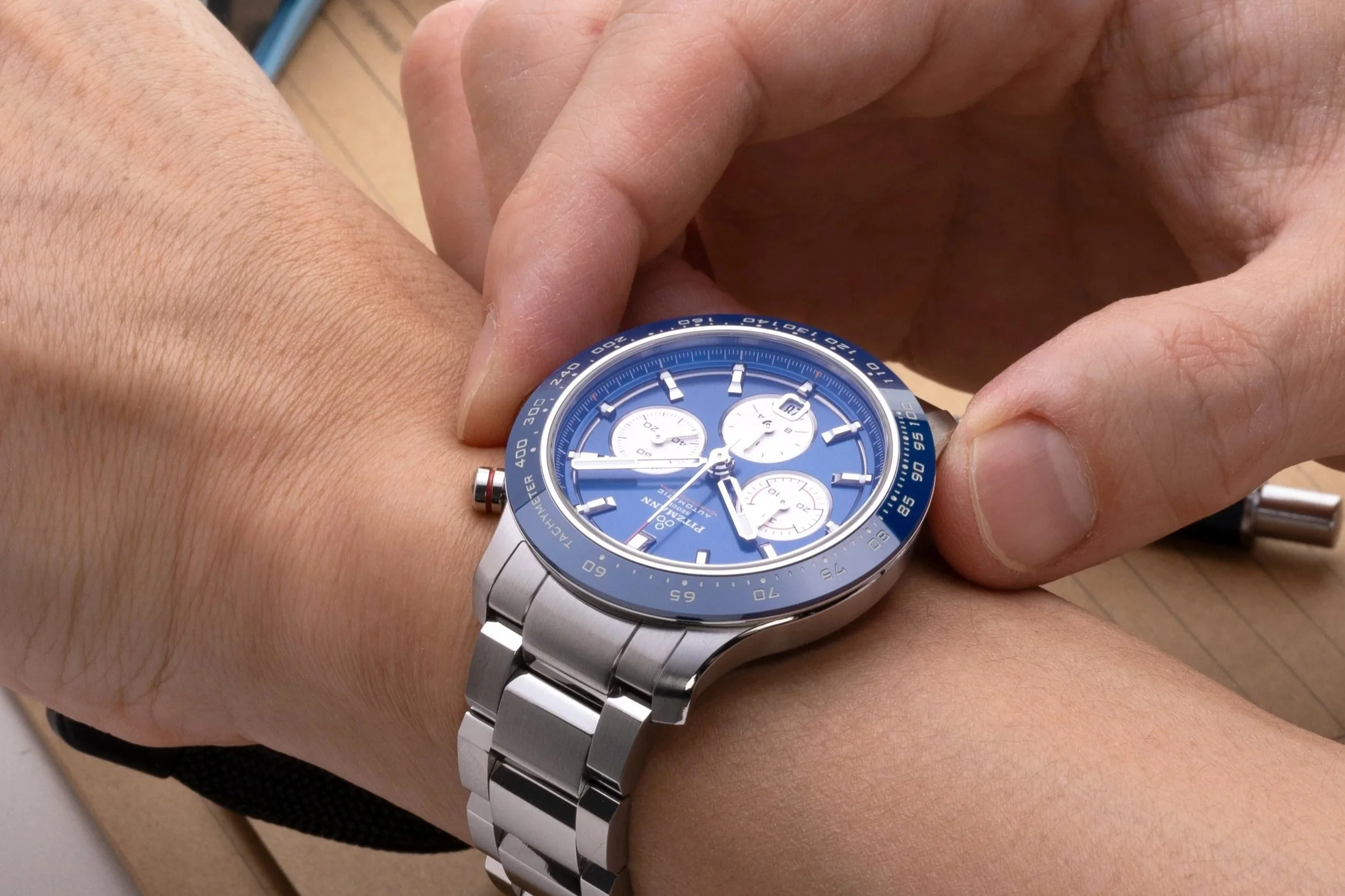 Leveraging the technological brilliance of the Seiko caliber 8R48(NE88) movement, Pitzmann takes pride in unveiling a chronograph watch that maintains a slim profile, elegantly complementing wrists of various sizes. This thoughtful design guarantees a perfect fit for any time, place, and occasion.